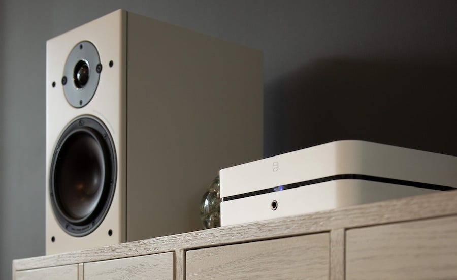 The beauty of Bluesound lies in its flexibility. Some rooms call for the elegant simplicity of Bluesound's all-in-one speakers like the NODE ICON or PULSE series—perfect when you want premium sound without any construction work. These finished speakers look stunning on a bookshelf or side table and deliver room-filling audio that rivals much larger systems.