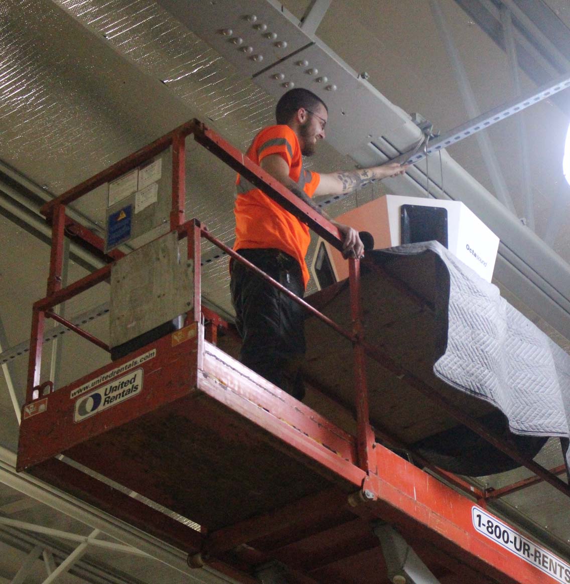 On Tuesday workers from Soundworks Inc worked from scaffolding to install a new sound system at Dorothy Hamill Rink in Byram. The project, a gift form the Greenwich Athletic Foundation, was long in the making, but had a tight window of time to be installed….